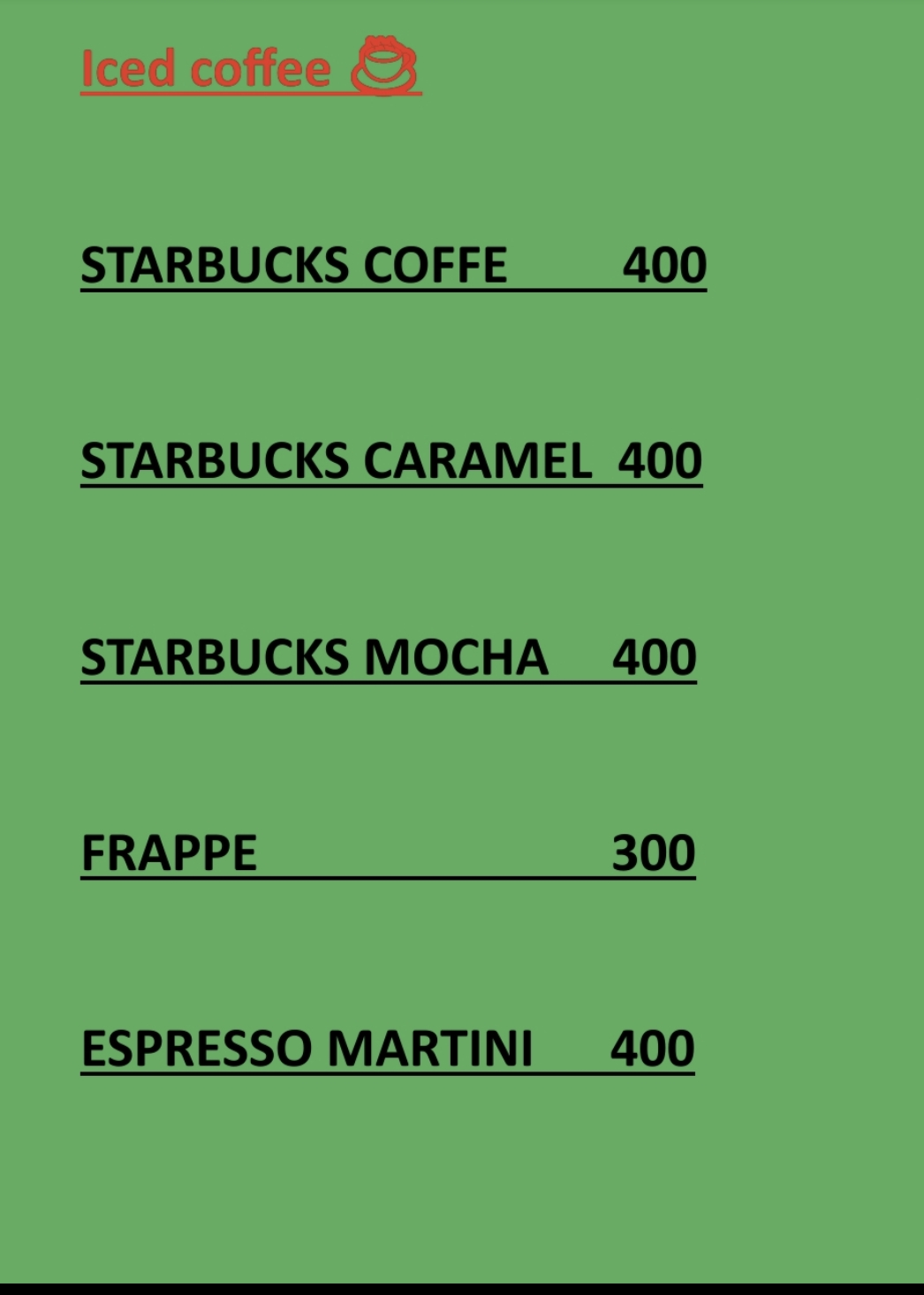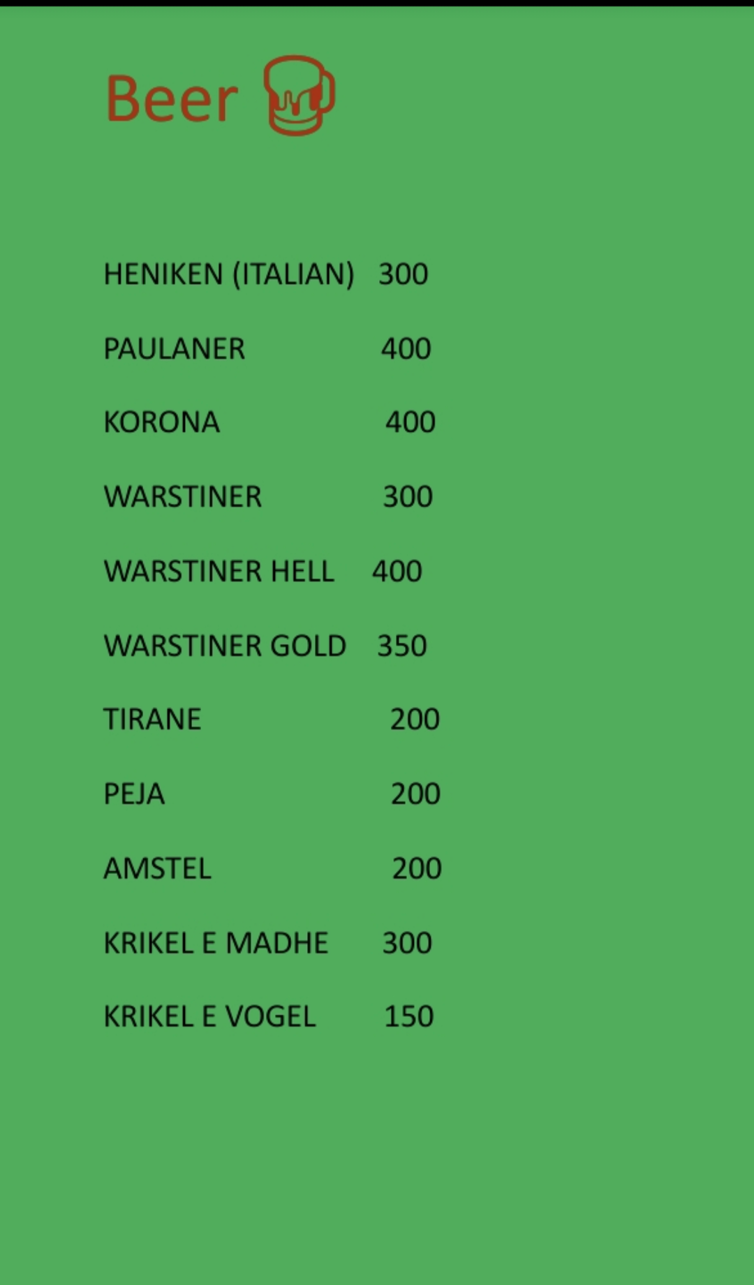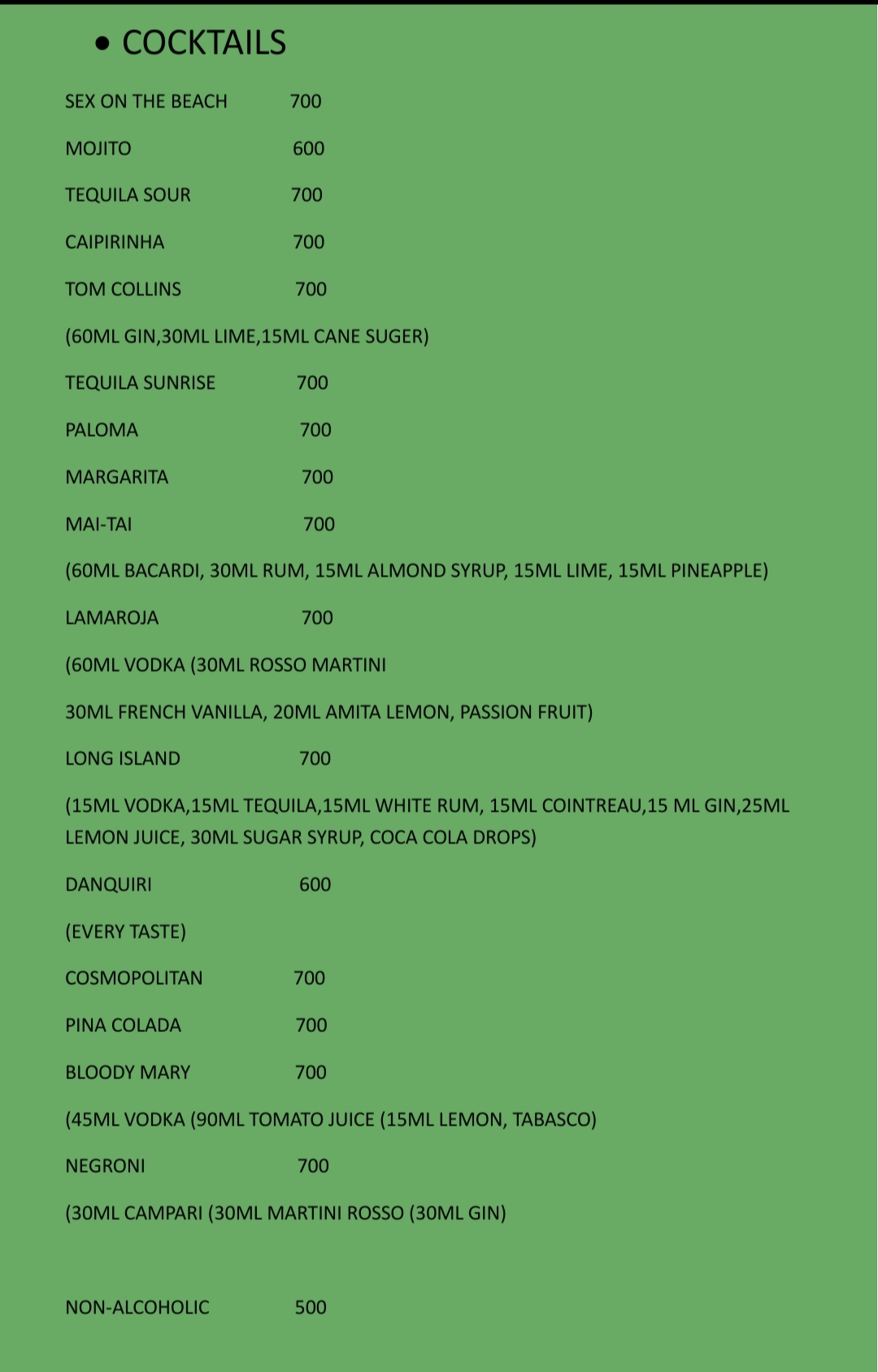 Beach Bar Menu
